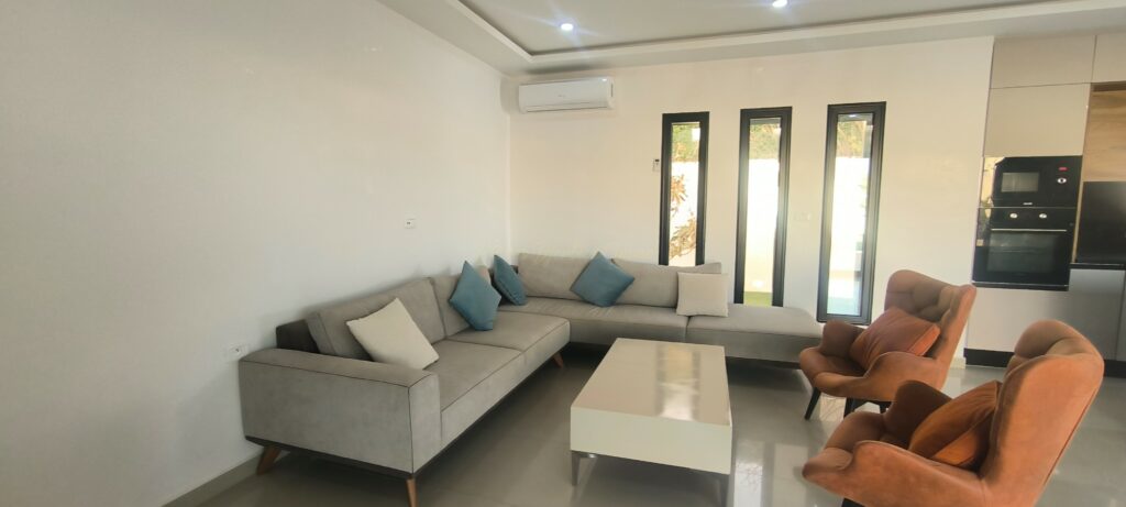 La villa est située dans un environnement calme et recherché, à proximité des belles plages de Djerba. Le loyer mensuel de 2500 TND offre une excellente opportunité de louer une propriété de luxe à un prix compétitif.