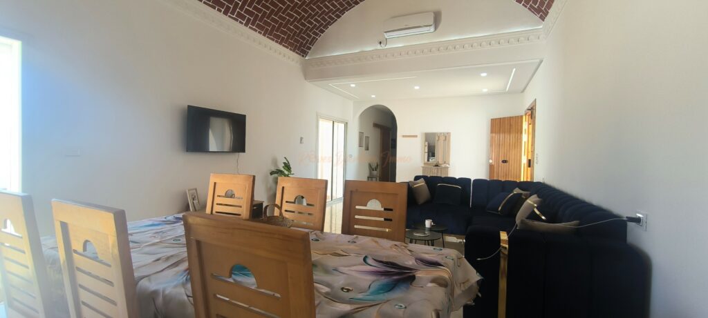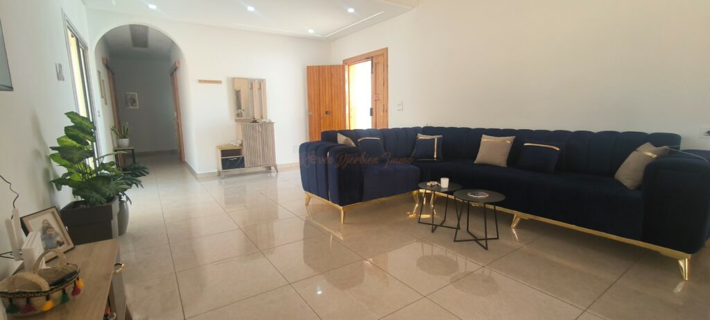 Située dans le calme et le charme de Mezraya, à Djerba, cette villa typique meublée et parfaitement entretenue est idéale pour une famille ou une personne recherchant une résidence principale où confort, tranquillité et intimité sont de mise.