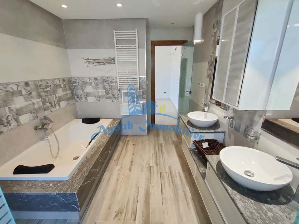 Une belle demeure pas comme les autres à Yasmine Hammamet à vendre ou à louer. La villa fait 1200m² de terrain dont 1100m² couvert, des grandes pièces chauffées et climatisées, 3 salons avec cheminée, un appartement, 5 suites avec des dressings et des terrasses vue de mer, 3 cuisines modernes, un Hammam, une piscine géante avec débordement, des chutes d’eau, ascenseur pré-installé , abri des voitures…10000dt la semaine
