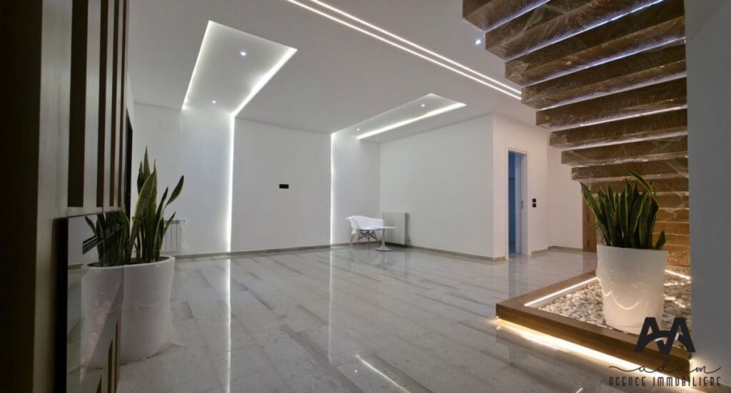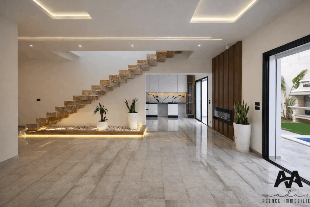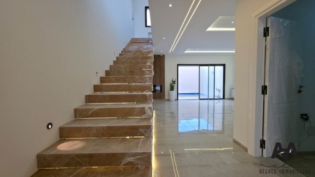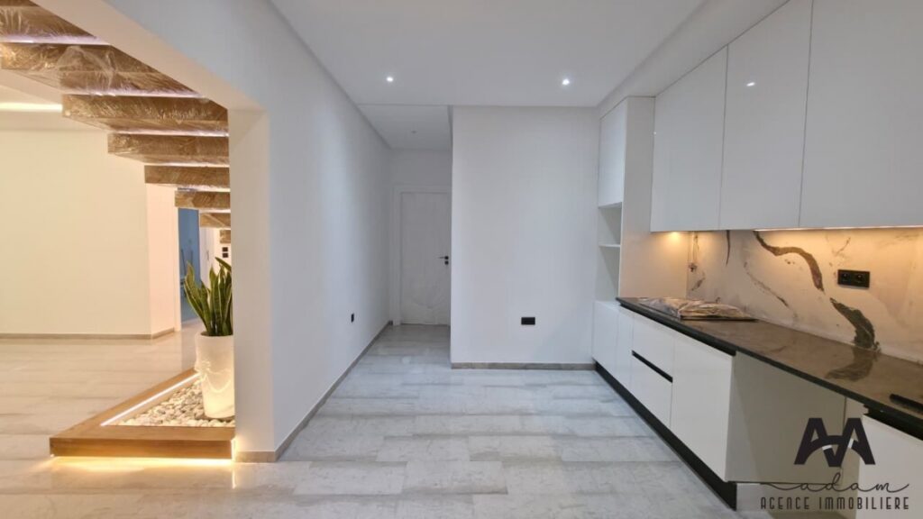 L’agence ADAM Immobilière vous propose à la vente une magnifique villa en duplex de type S+3, idéalement située à Beni Khiar Plage, dans un cadre élégant, calme et raffiné.