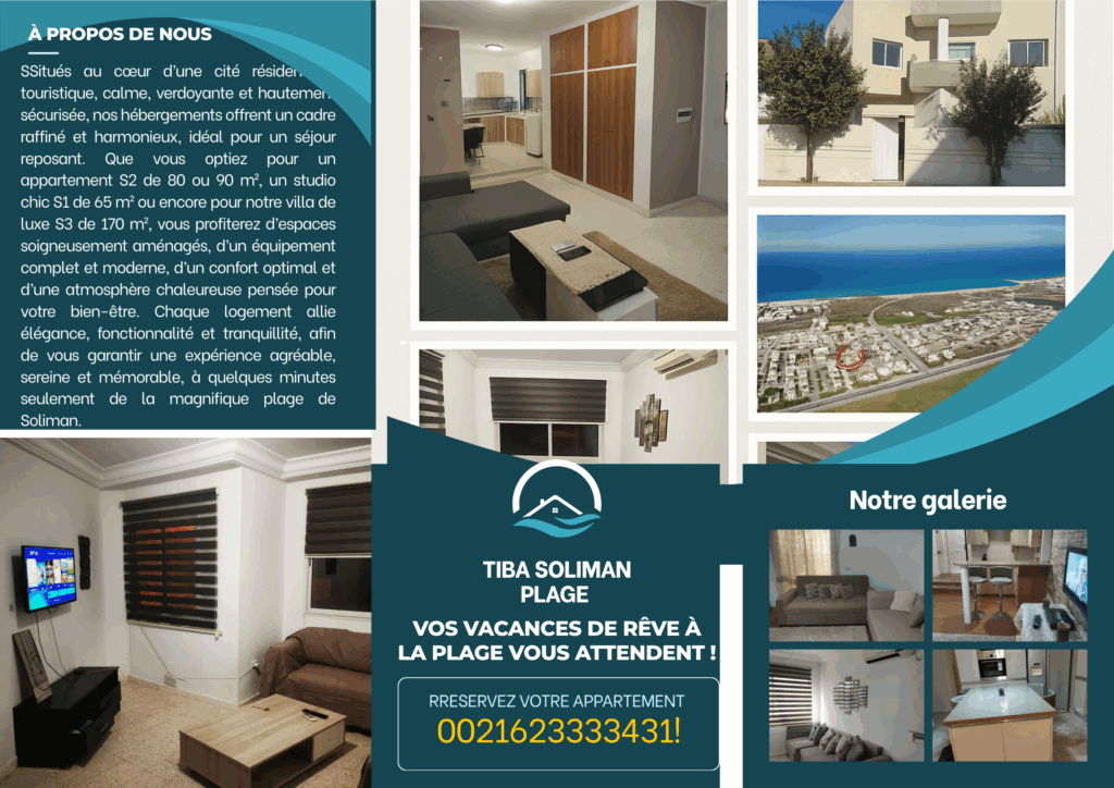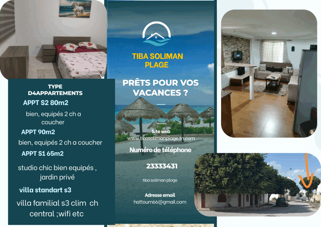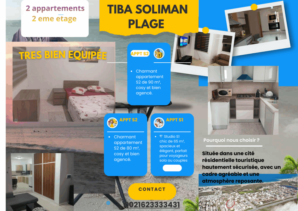 Idéal pour résidence familiale ou investissement locatif (annuel ou saisonnier).connue sur Booking.com » tiba soliman plage »