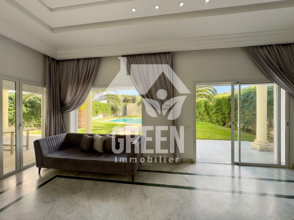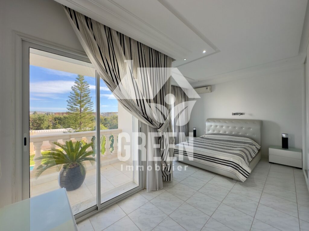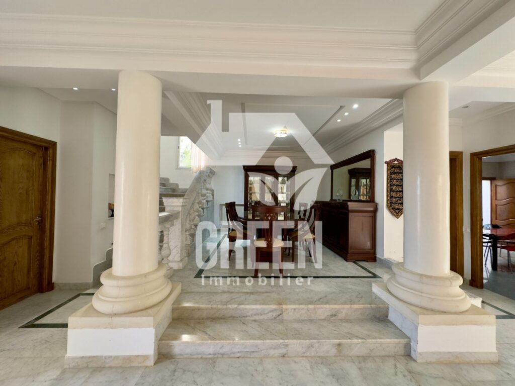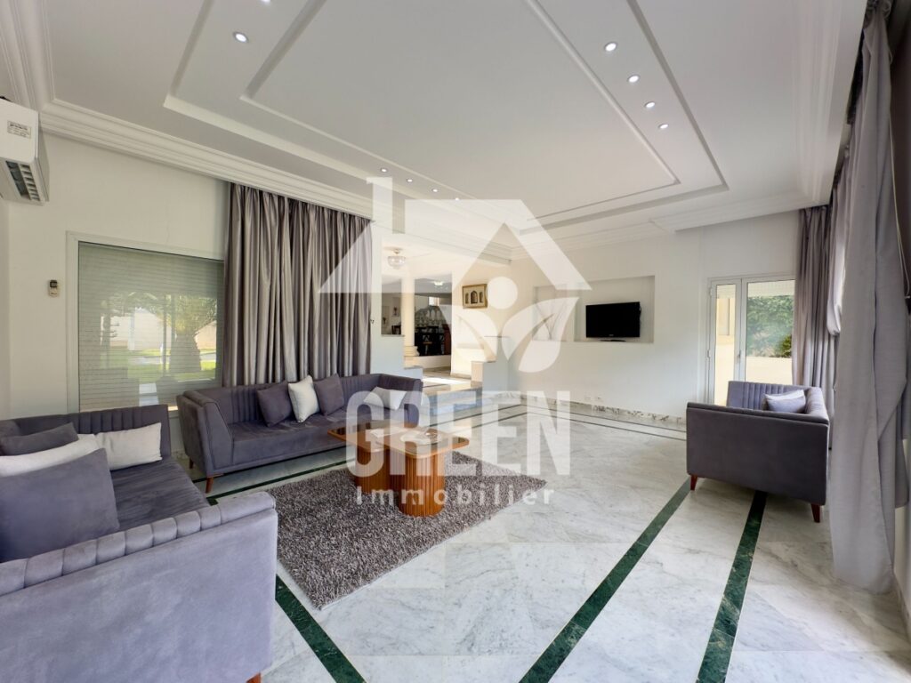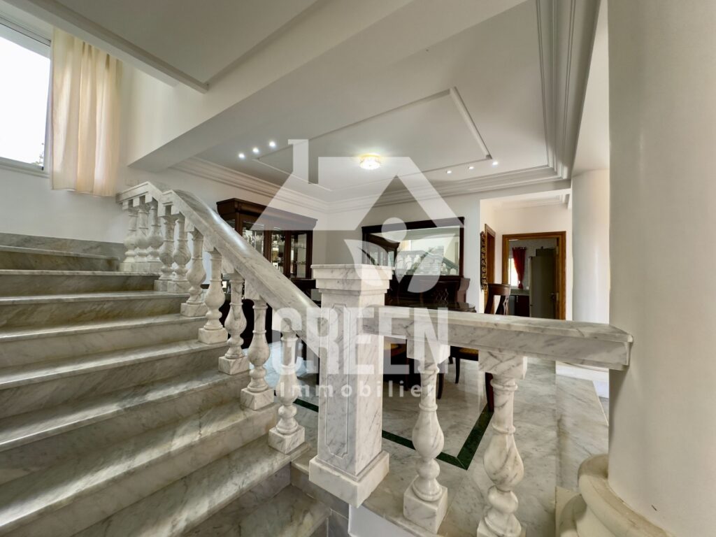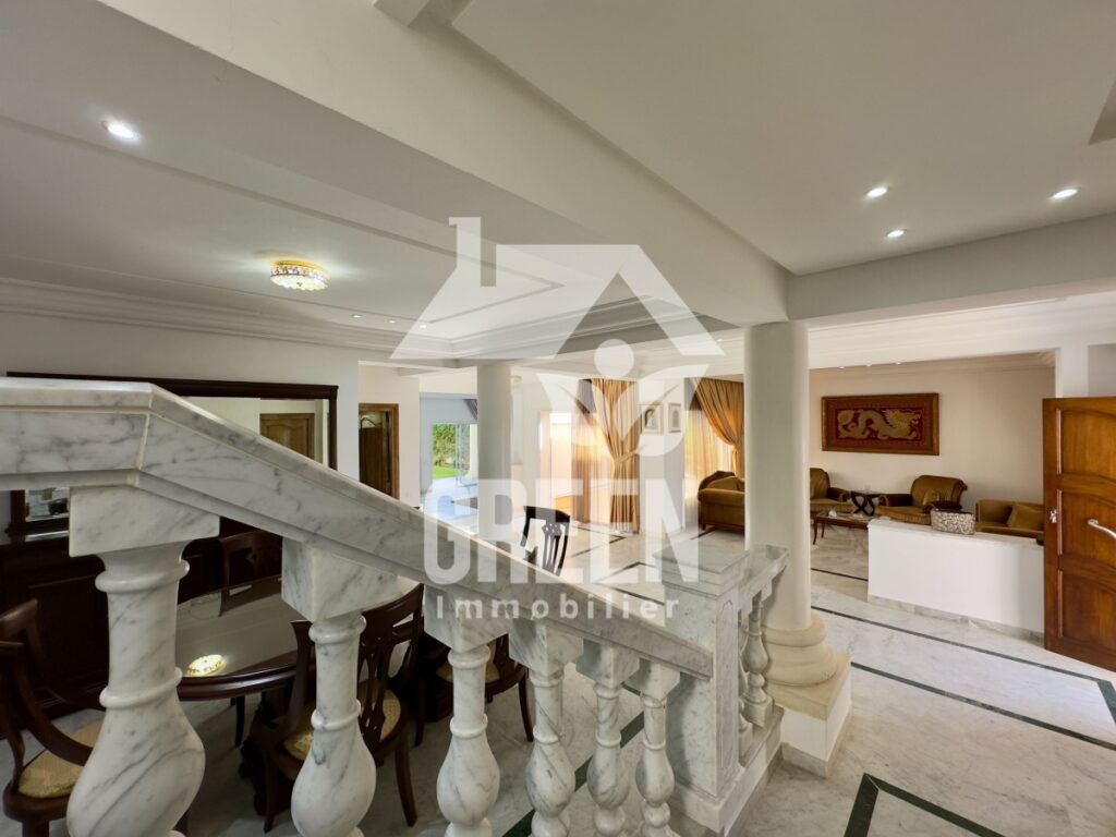 La villa comprend un grand salon idéal pour les moments de convivialité, une salle à manger pour des repas en famille ou entre amis, et une cuisine bien aménagée qui facilite la préparation de délicieux repas. Les quatre suites, chacune composée d'une chambre, d'une salle de bain et d'un dressing, offrent un espace intime et confortable pour chaque membre de la famille ou pour vos invités. Une chambre de service et un studio de gardien complètent cet espace de vie pratique et sécurisé.