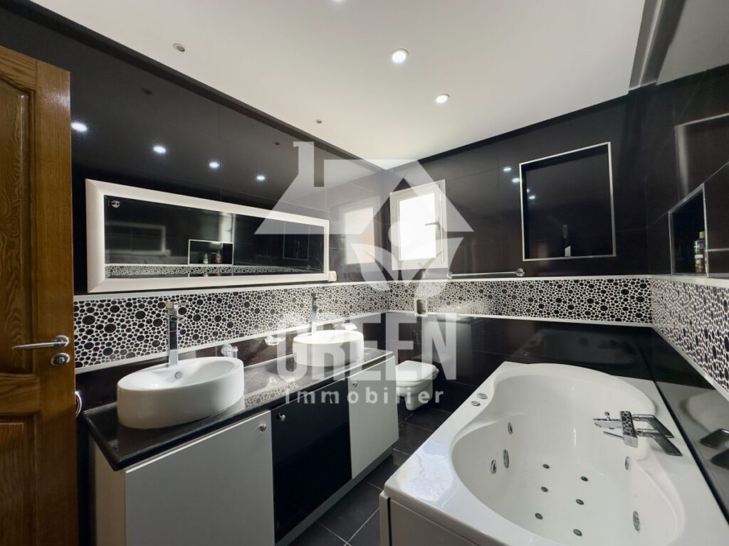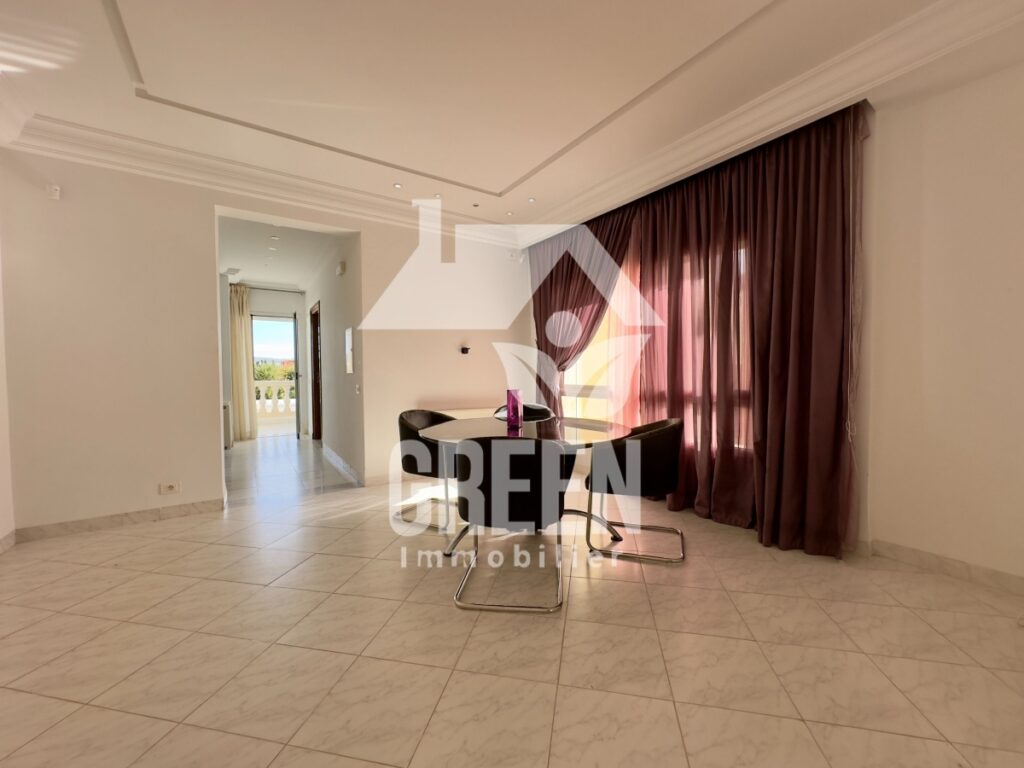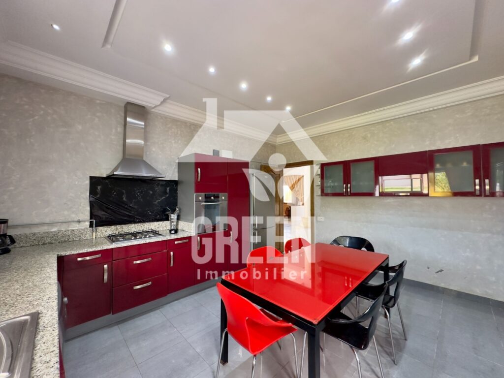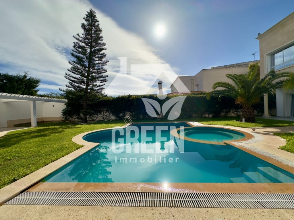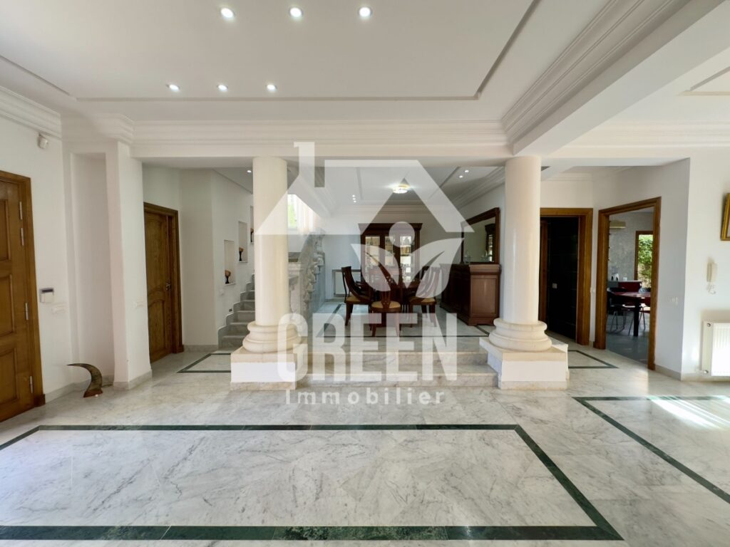 La villa comprend un grand salon idéal pour les moments de convivialité, une salle à manger pour des repas en famille ou entre amis, et une cuisine bien aménagée qui facilite la préparation de délicieux repas. Les quatre suites, chacune composée d'une chambre, d'une salle de bain et d'un dressing, offrent un espace intime et confortable pour chaque membre de la famille ou pour vos invités. Une chambre de service et un studio de gardien complètent cet espace de vie pratique et sécurisé.