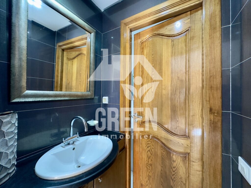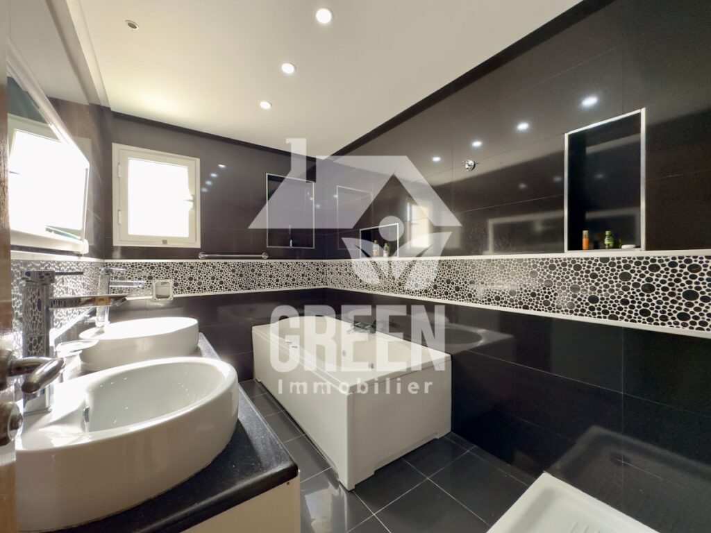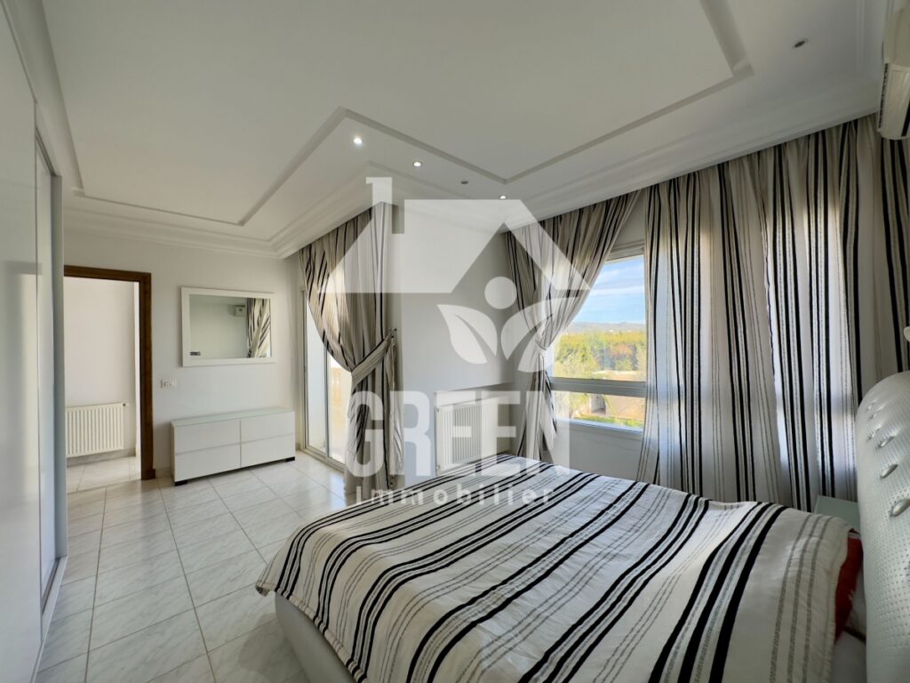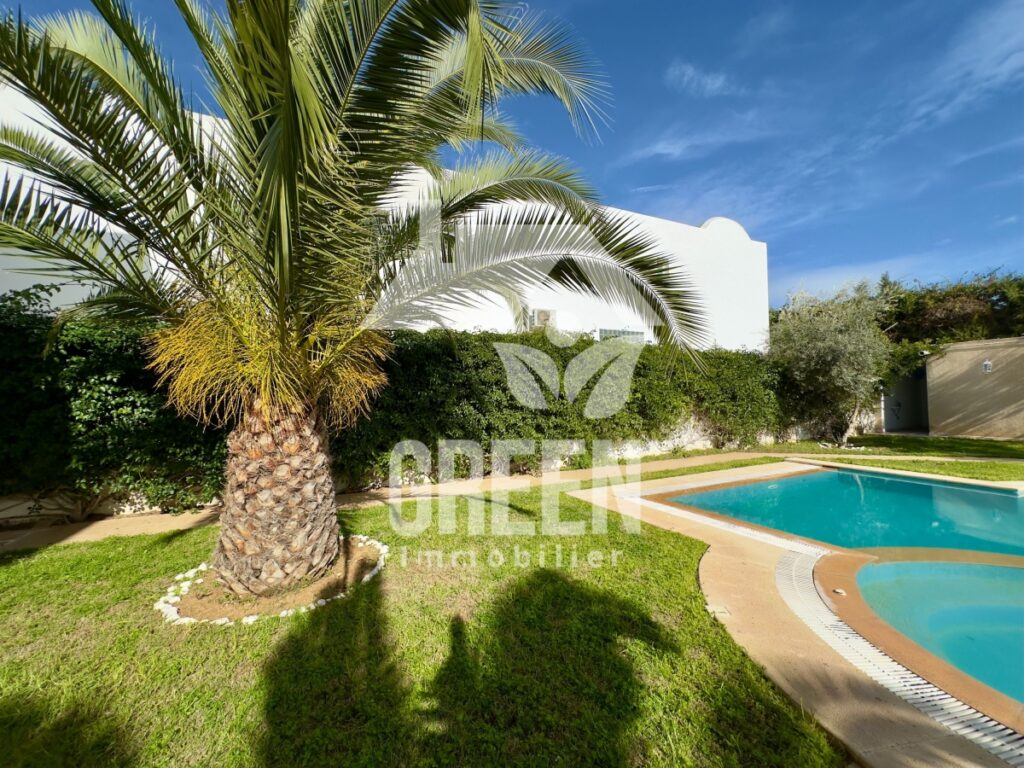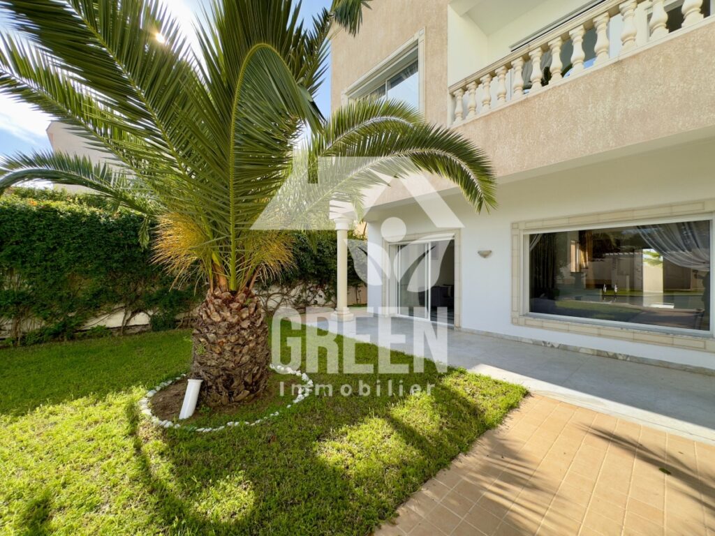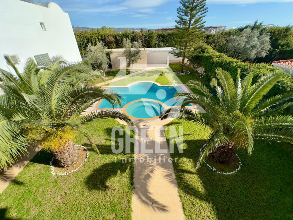La villa comprend un grand salon idéal pour les moments de convivialité, une salle à manger pour des repas en famille ou entre amis, et une cuisine bien aménagée qui facilite la préparation de délicieux repas. Les quatre suites, chacune composée d'une chambre, d'une salle de bain et d'un dressing, offrent un espace intime et confortable pour chaque membre de la famille ou pour vos invités. Une chambre de service et un studio de gardien complètent cet espace de vie pratique et sécurisé.